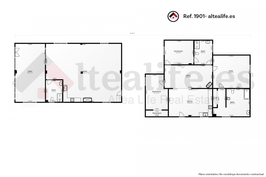 - Gran sala diáfana con zona de salón, comedor y cocina.