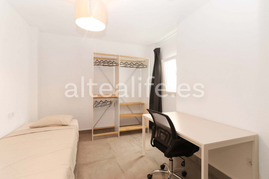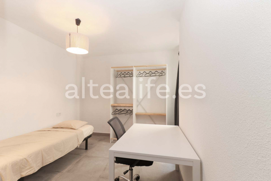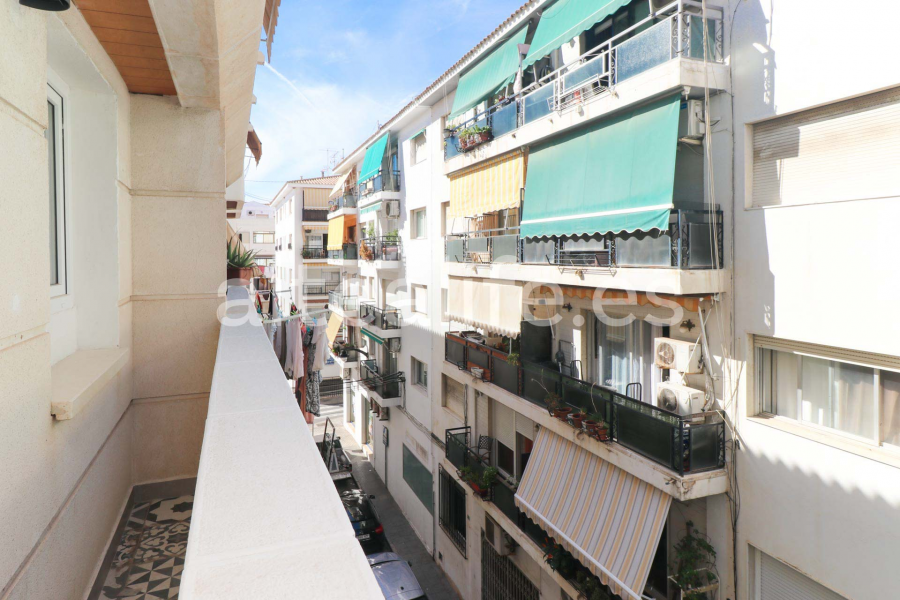 El interior destaca por su distribución equilibrada y práctica. La cocina independiente, de diseño actual con mobiliario en acabado madera y revestimientos oscuros que aportan contraste y elegancia, se comunica con el salón comedor mediante una puerta corredera, permitiendo abrir o cerrar espacios según las necesidades. El salón es luminoso y confortable, con salida directa a un balcón con vistas a la calle, un elemento que aporta luz natural y conexión con el entorno urbano del centro de Altea. La vivienda dispone además de lavadero independiente, muy funcional para el día a día.