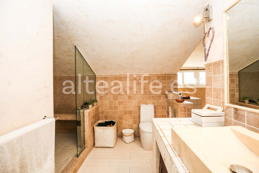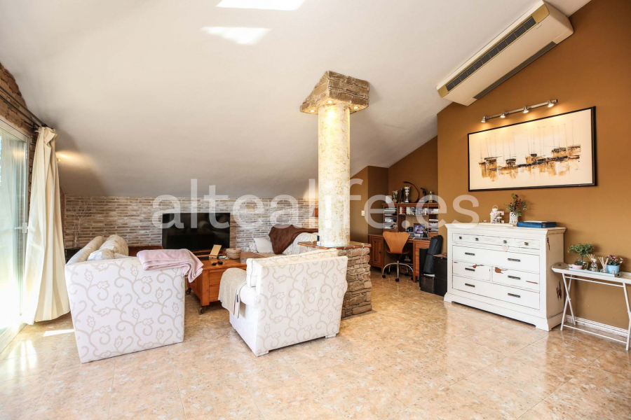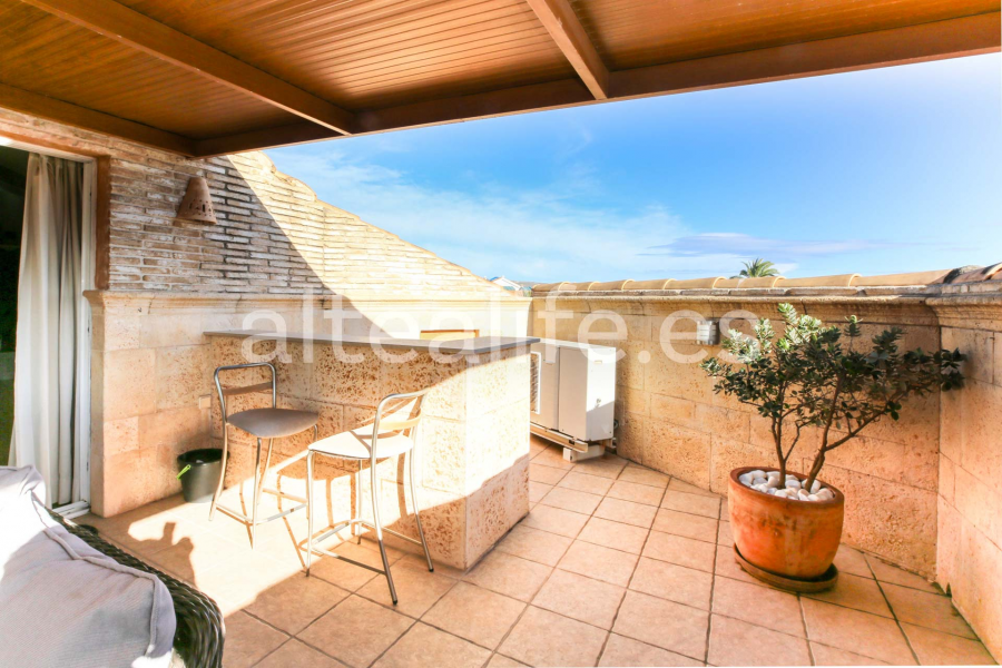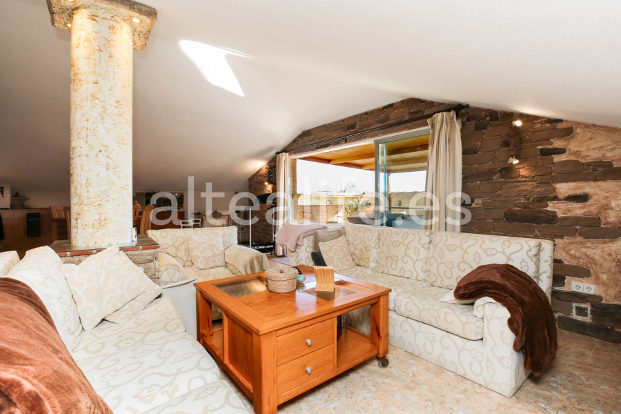 Venta de ático de 165 m2 en Altea, ubicado en la zona de Garganes, y que ofrece una combinación excepcional de amplitud, luminosidad y confort mediterráneo. Situado a solo 5 minutos andando del paseo marítimo y de la playa, y rodeado de todos los servicios, se presenta como una vivienda ideal tanto para residencia habitual como para inversión. La propiedad destaca por su gran terraza de 40 m2 con pérgola de madera, integrada al salón mediante amplios ventanales que amplifican la sensación de espacio y luminosidad. Desde la terraza se disfrutan vistas al casco urbano, así como vistas parciales al mar y a la montaña, un atractivo muy característico de las mejores viviendas en Altea.