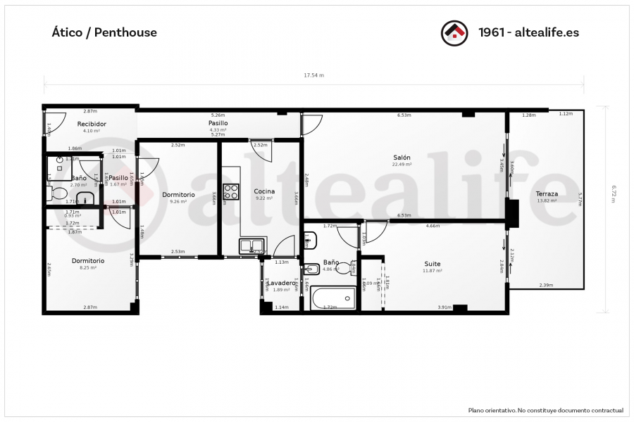 - 3 dormitorios con armarios empotrados, uno de ellos con baño en suite y acceso directo a la terraza.