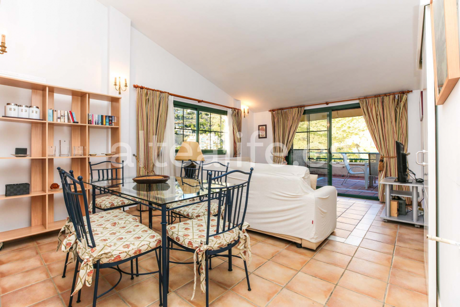 La propiedad destaca por su impresionante terraza privada, diseñada como una auténtica prolongación del salón gracias a sus grandes ventanales correderos y persianas mallorquinas, aportando carácter mediterráneo y una excelente entrada de luz natural.
