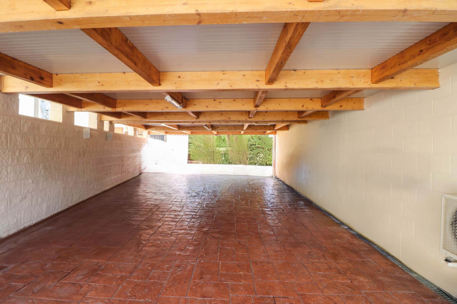 La villa dispone de zona de aparcamiento cubierta para dos vehículos y posibilidad de usar uno de los patios como parking adicional si se desea.