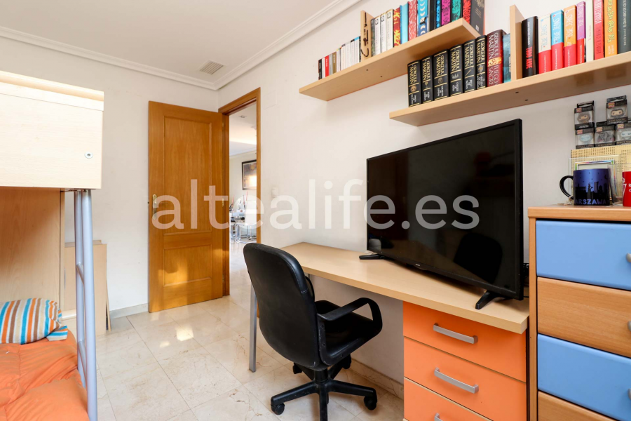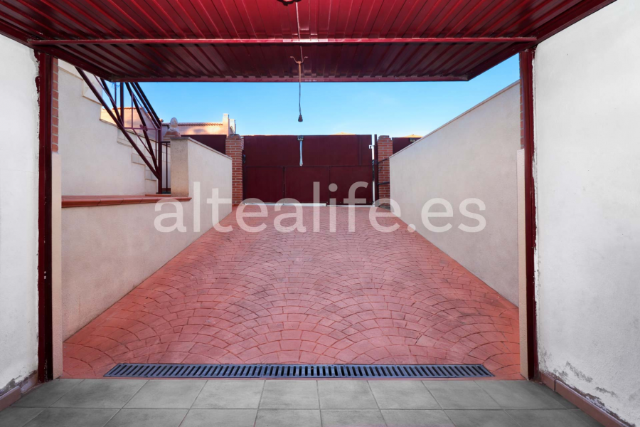En el exterior encontramos un amplio patio adoquinado, ideal para varios vehículos, zona de juegos o incluso habilitar un espacio ajardinado. Ubicado en urbanización con piscina comunitaria, este bungalow combina tranquilidad residencial y cercanía a todos los servicios. Una excelente oportunidad para quienes buscan comprar bungalow en La Nucía, cerca de Altea, con terrazas, garaje y espacios exteriores amplios.