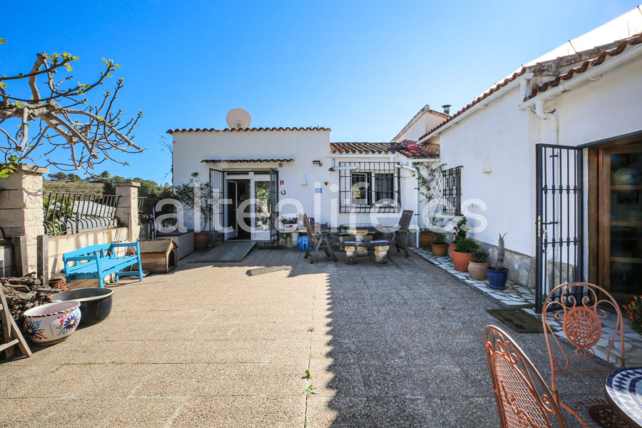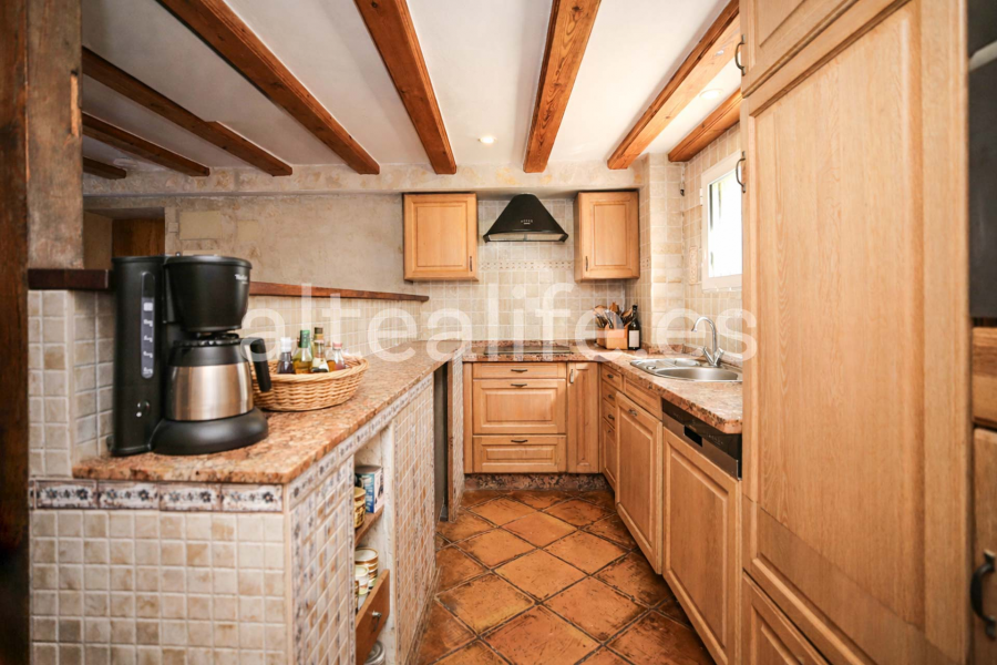 La vivienda, de 144 m² construidos sobre una parcela de 1.859 m², destaca por su orientación sur, lo que garantiza una excelente luminosidad durante todo el día. Su arquitectura tradicional con fachada blanca, cubierta de teja y vigas de madera vistas aporta un carácter cálido y auténtico, ideal para quienes buscan una compra de casa con encanto en Altea.