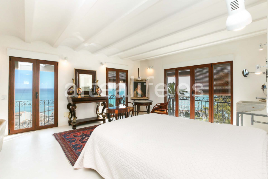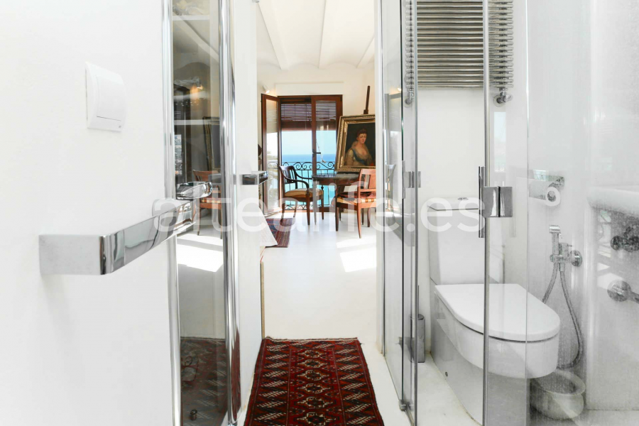 Dos amplios dormitorios dobles, ambos con baño en suite, armarios y salida a balcones. Cada habitación disfruta de vistas abiertas al mar Mediterráneo, lo que aporta una sensación de calma y exclusividad. - Tercera planta:
