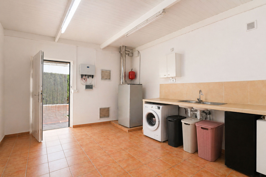 La villa dispone de zona de aparcamiento cubierta para dos vehículos y posibilidad de usar uno de los patios como parking adicional si se desea.