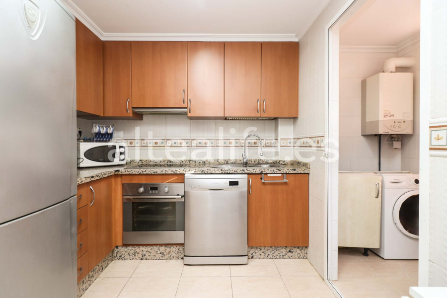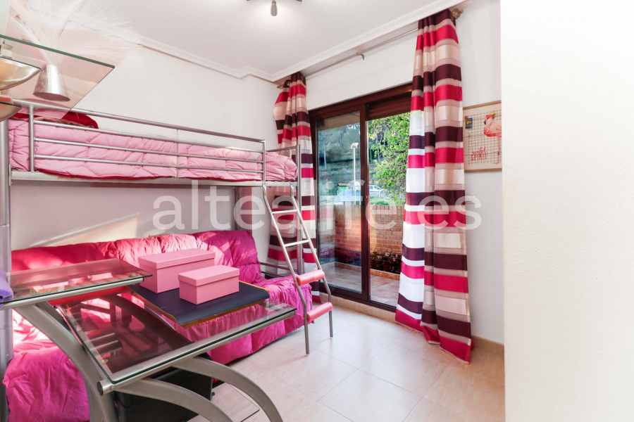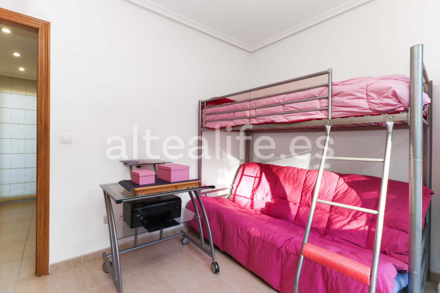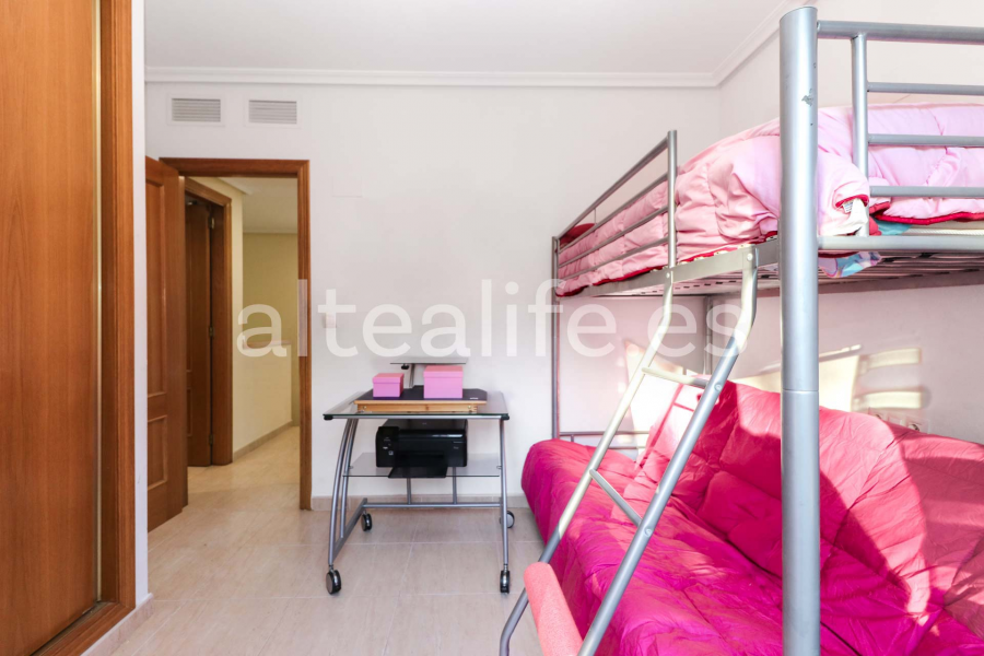 En el exterior encontramos un amplio patio adoquinado, ideal para varios vehículos, zona de juegos o incluso habilitar un espacio ajardinado. Ubicado en urbanización con piscina comunitaria, este bungalow combina tranquilidad residencial y cercanía a todos los servicios. Una excelente oportunidad para quienes buscan comprar bungalow en La Nucía, cerca de Altea, con terrazas, garaje y espacios exteriores amplios.