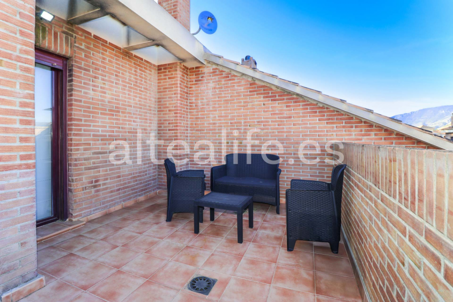 La terraza, perfectamente orientada al noreste, ofrece espacio suficiente para crear un comedor de verano, zona chill out o barbacoa, ideal para disfrutar del clima mediterráneo durante todo el año.