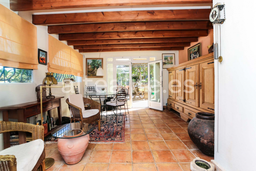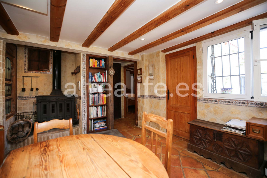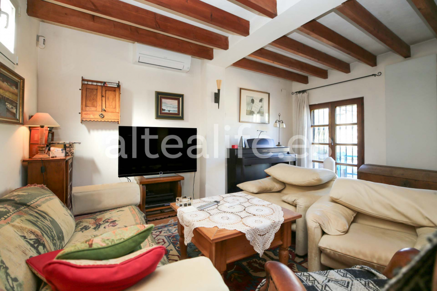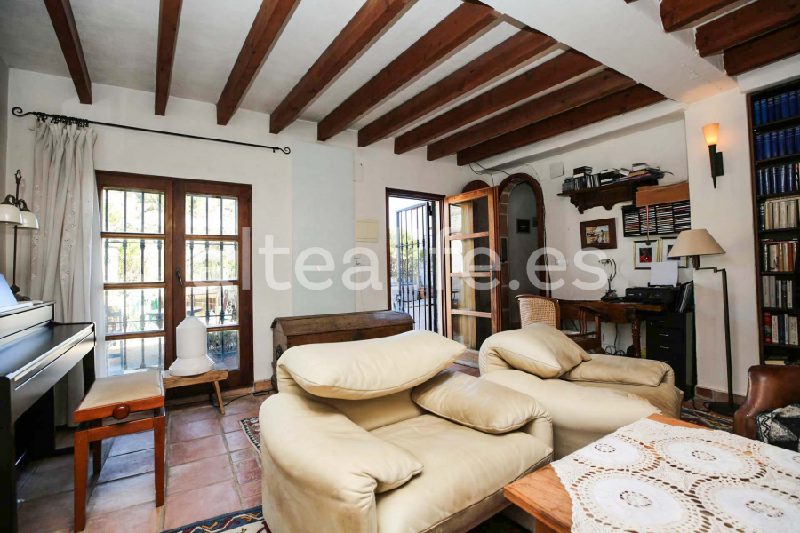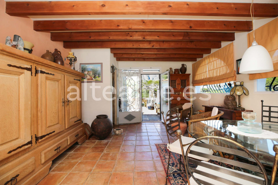 La vivienda, de 144 m² construidos sobre una parcela de 1.859 m², destaca por su orientación sur, lo que garantiza una excelente luminosidad durante todo el día. Su arquitectura tradicional con fachada blanca, cubierta de teja y vigas de madera vistas aporta un carácter cálido y auténtico, ideal para quienes buscan una compra de casa con encanto en Altea.