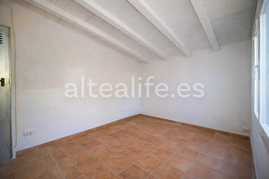 El exterior es uno de los grandes protagonistas de esta propiedad en venta en Altea. La casa dispone de dos amplias terrazas, una de ellas cubierta con una preciosa pérgola de hierro con cañizo natural, creando un espacio sombreado perfecto para comidas y reuniones al aire libre. La conexión directa desde los salones potencia la sensación de amplitud y vida exterior durante todo el año.