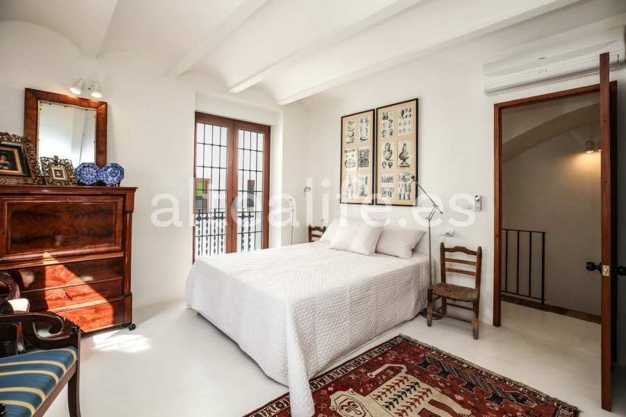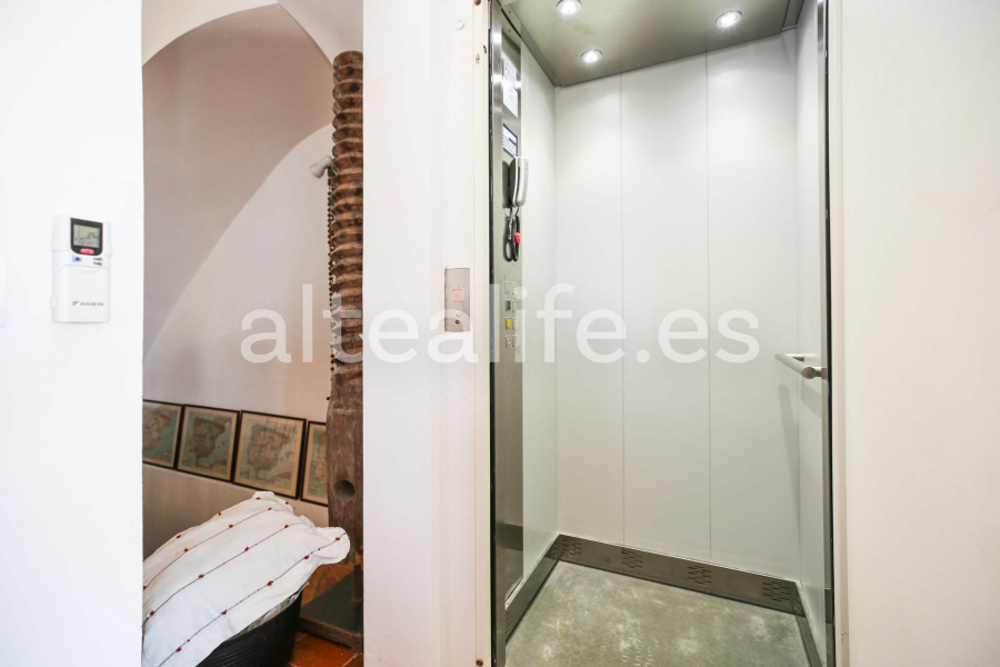 La vivienda cuenta con ascensor interior que conecta cómodamente las 5 plantas, además de una escalera interior. En cuanto a calidades, dispone de suelo radiante en toda la vivienda, aire acondicionado, ventanas Climalit, persianas enrollables y de madera, así como materiales nobles como madera natural, mármol y acabados artesanales. Las paredes han sido tratadas con mortero de cal, mejorando la eficiencia y el confort interior. Su orientación sureste garantiza una excelente entrada de luz natural durante todo el día.