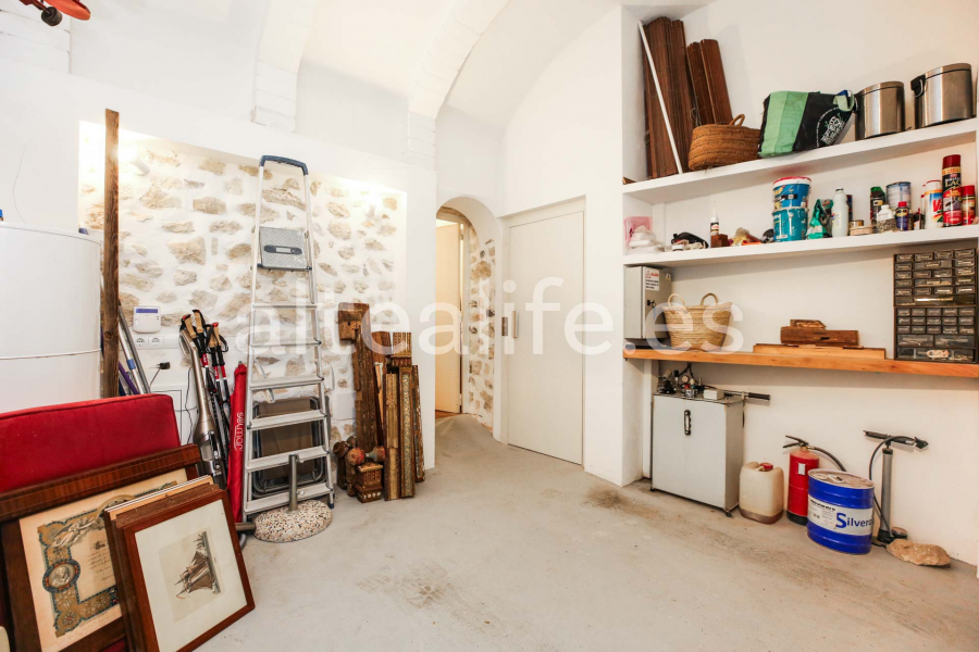 Amplio garaje privado, un auténtico lujo en el casco antiguo de Altea, con acceso independiente desde otra calle. En esta planta también encontramos una acogedora sala polivalente, actualmente utilizada como salón de lectura, con librerías integradas y gran capacidad de almacenaje, ideal como despacho, zona de ocio o estudio. - Primera planta:
